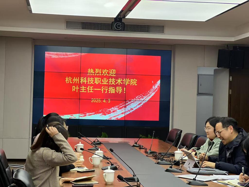 4月3日下午,杭州科技职业技术学院教师发展中心主任叶卫霞一行到学校教师教学发展中心进行调研交流。教发中心主任胡恩保、副主任周鹏以及有关工作人员参加交流座谈会。