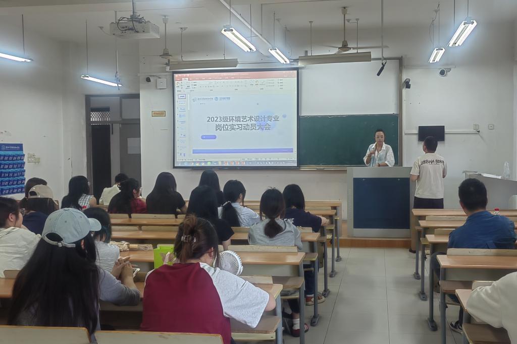 为扎实做好学生岗位实习安全教育、实习指导与过程管理工作,保障实习工作有序推进,5月17日,艺术设计学院开展2023级学生实习动员。学院班子、专业部主任、12家校企合作单位企业导师代表、实习指导教师代表、班主任及全体2023级学生参加。