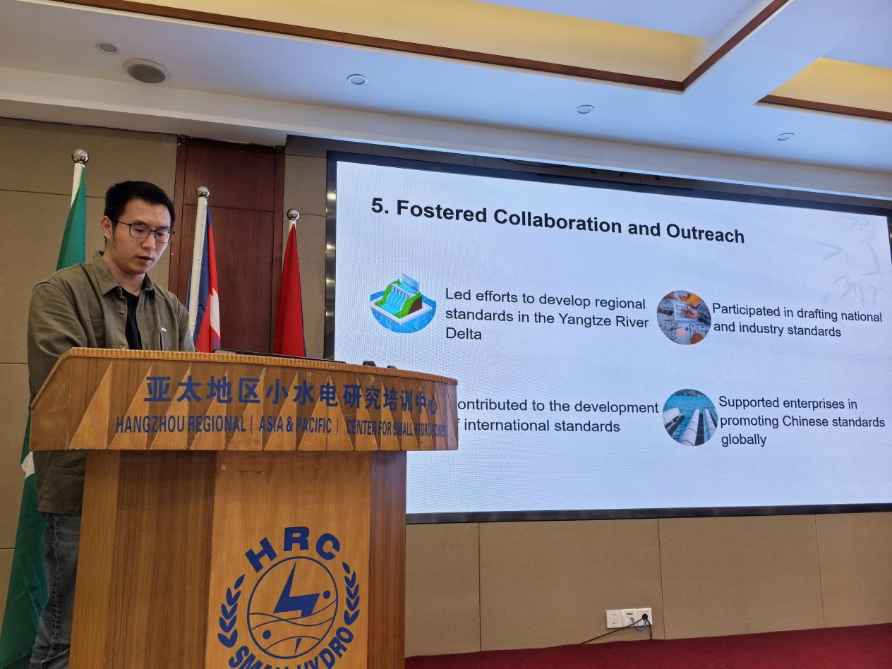 我校水利标准与知识产权研究中心成员、浙江省水利标准化协会秘书处陈天宁博士参加援外研修班结业典礼,并以《Standardization:Powering the Future of Provincial Water Modernization》为题发言。他向来自“一带一路”国家的学员介绍了我省水利标准化工作的基本情况,并现场演示了我校自主研发的水利标准大模型WSL的实际操作过程,各国参与人员对其使用效果有了直观的了解和体验。典礼期间,各国官员、技术人员深入探讨了小水电建设领域先进理念、标准化应用情况等,对于向世界推广中国水利标准和推进国际交流合作有重要意义。