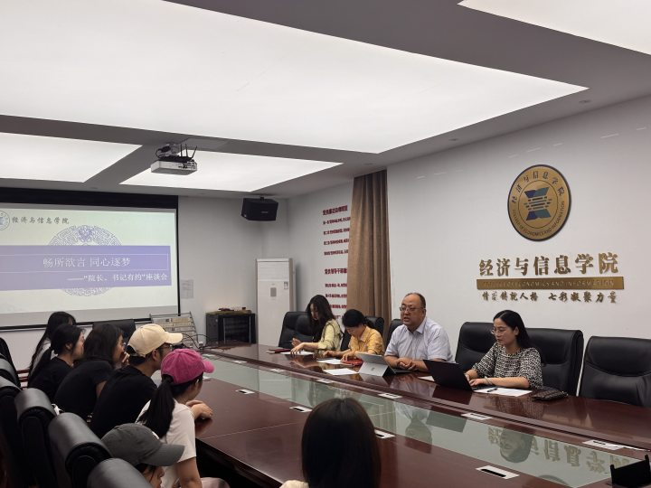 为深入了解学生需求,切实解决学生学习生活中的实际问题,经济与信息学院于6月17日召开“畅所欲言,同心筑梦”——“院长、书记有约”座谈会。院长景秀眉、党总支书记王志远、副书记徐宜宜、辅导员黄贝迪及学生代表参会,旨在深入学生一线,解决实际问题,共谋学院发展。会议由党总支书记王志远主持。