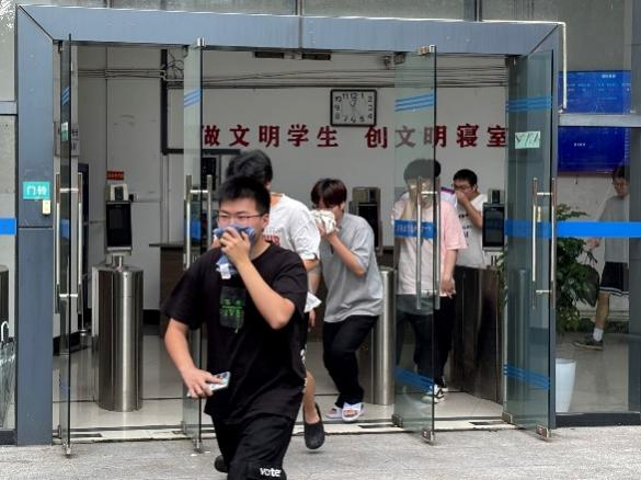 演练开始后,同学们在老师的引导下,快速有序离开寝室到操场集合。辅导员贾扬进行了演练总结,强调遇到突发情况要保持冷静,听从现场指挥人员安排,按照疏散路线有序撤离,不拥挤、不推搡,在逃离过程中远离电源、火源,不坐电梯,选择安全楼梯通道逃生。