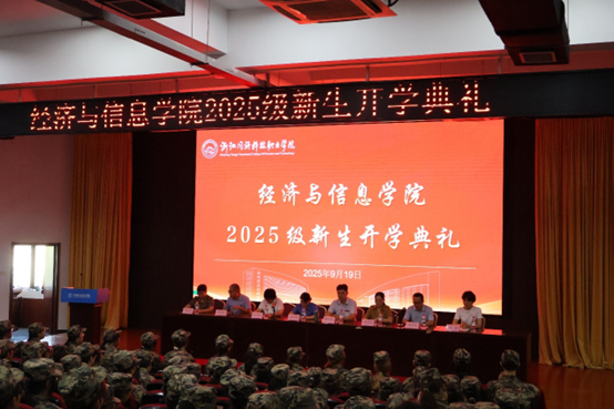 秋色盈庭迎新知,瓯江潮涌启新程。9月19日上午,经济与信息学院2025级新生开学典礼在瓯江楼三楼报告厅举行。学院领导班子、各专业部主任、新生班主任、辅导员及2025级全体新生参加会议。典礼由学院党总支副书记徐宜宜主持。