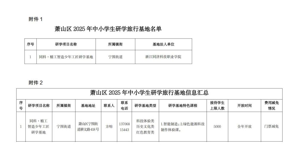 近日,杭州市萧山区教育局、杭州市萧山区文化和广电旅游体育局联合发布了《关于公布萧山区2025年中小学生研学旅行基地名单的通知》(萧教〔2025〕71号)。学校“同科·精工智造少年工匠研学基地”凭借鲜明的特色、优质的资源与完善的保障,成功入选萧山区中小学生研学旅行基地。
