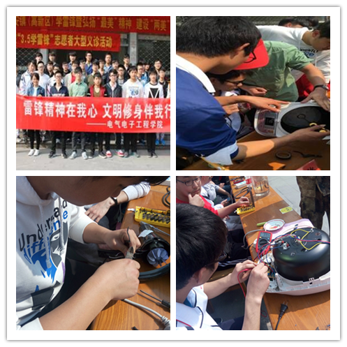 3月5日是周恩来总理诞辰118周年,也是第53个学雷锋日。为了更好地学习弘扬伟人精神,机电系电力1502班与浙江机电职业技术学院长安校区家电维修志愿队携手,共同发起了“雷锋精神在我心,文明修身伴我行”活动,走进长安社区为居民提供免费维修家电服务。