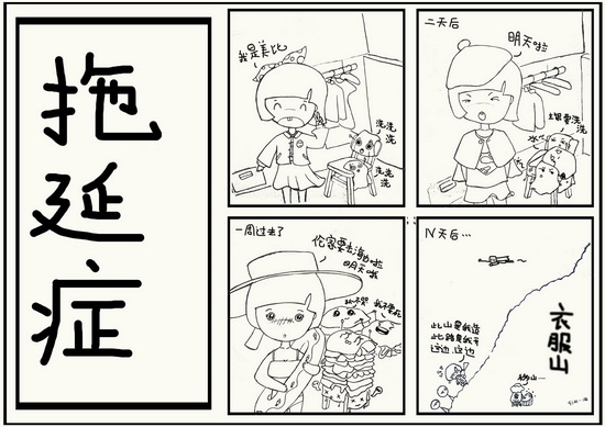 拖延症是指自我调节失败,在能够预料后果有害的情况下,依然把计划要完成的日程往后推迟的一种行为。据调查,约75%的大学生认为自己存在拖延问题,严重的拖延症会对个体的身心健康带来消极影响,如出现强烈的自责情绪、负罪感,自我否定、贬低,并伴有焦虑症、抑郁症等心理疾病,一旦出现这种状态,需要引起重视。拖延症形成的具体原因尚不清楚,一般认为,拖延是由一种或数种相对稳定的人格特征造成的,个体在各种不同的环境和条件下都可能拖延;当然,拖延多是由环境决定的不稳定因素造成。