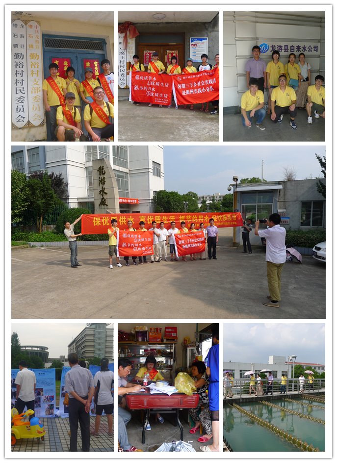 今年是我省“五水共治”全面推进之年,为了积极响应“五水共治”活动的开展,建筑系分别组建三个小分队,在暑假期间赴丽水、湖州、衢州地区开展“优质供水,优质生活”为主题的社会实践活动。