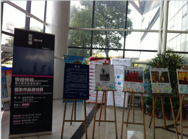 日前,快拍快拍网《每天最有意思的照片》摄影作品正在我院图书信息中心大厅展出,参展的45幅作品都由快拍小友创作。策展人傅拥军,现任《都市快报》摄影部主任,是第52届世界新闻摄影比赛(荷赛)获得者,2007年获中国摄影金像奖。曾三次获得国际新闻摄影比赛(华赛)金奖,一次银奖。2001年获中国新闻奖和第20届全国摄影艺术展金牌,全国十佳青年摄影记者提名奖。出版著作《镜头朝下》和《纪实摄影指导》。