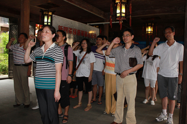 “我志愿加入中国共产党,拥护党的纲领,遵守党的章程,履行党员义务……”7月3日下午,烈日炎炎,学院行政党支部和艺术系党总支的党员们来到安吉姚家大院(原新四军反顽斗争指挥部所在地),郑重举行了新党员宣誓仪式和老党员重温入党誓词活动。宣誓活动结束后,党员们参观姚家大院,学习解前辈的光辉事迹,受到了一次革命传统教育。