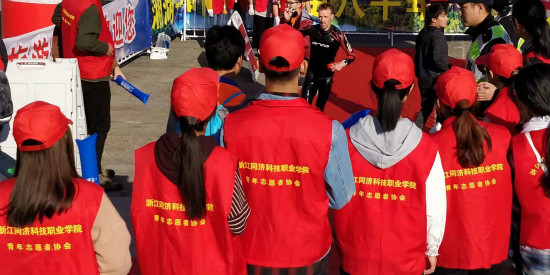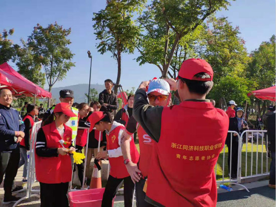 我院百名志愿者奔赴杭州湘湖铁人三项开展志愿服务