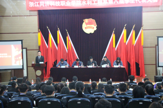 2019年1月8日,水利工程系第八次学生代表大会在学院图书信息楼报告厅隆重举行,学院团委副书记傅鑫杰、水利工程系副主任刘进宝、系党总支副书记罗文等相关领导和老师,学院学生会主席、各系团总支书记、副书记及各系学生会主席及水利工程系169名学生代表参加了此次大会。会议由水利工程系团总支书记张峰主持。