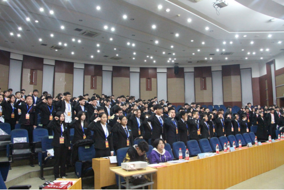 会议最后,水利工程系团总支书记张峰宣读了《会议决议》,全体代表进行了宣誓,表明水利系青年学生建功新时代的决心。水利系党总支副书记罗文致闭幕词,他对此次大会的圆满落幕表示祝贺,对在大会筹备过程中付出艰苦努力的各位师生表示亲切慰问。罗书记充分肯定了上一届团学组织对水利系发展和学生工作所作出的贡献,并就新当选的新一届学生会领导班子提出了几点希望和要求:一是要高举习近平新时代中国特色社会主义思想伟大旗帜,始终坚持党的政治理念学习教育;二是要积极激励广大青年学子投身到团学的各项工作当中来,持续推进团学活动和开展丰富多彩的社会实践服务;三是要怀着水利人应有的激情和梦想,秉承“厚德、笃学、修能”的校训精神,持续深化水利系“肯干、实干、能干”的校园文化品牌建设,勇于创新、敢于实践、锐意进取,唱响精彩的青春之歌。