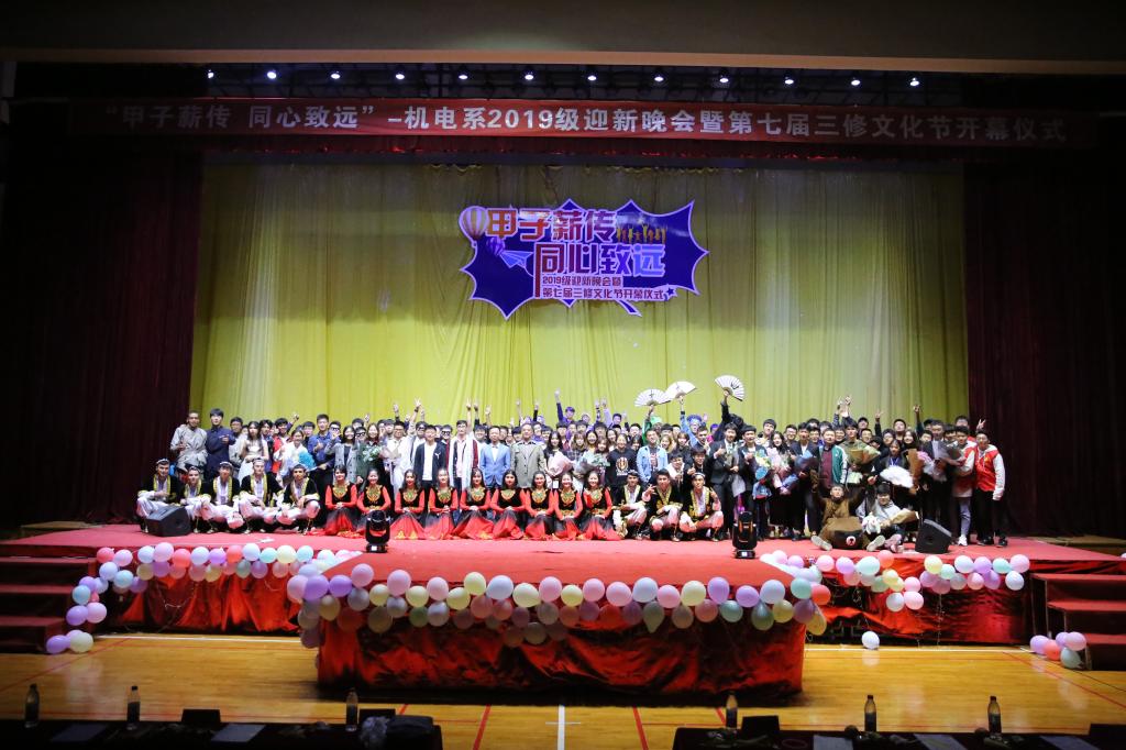 2019年10月29日18:30,机电系2019级迎新晚会暨第七届三修文化节开幕仪式在文体中心成功举行。晚会以“甲子薪传 同心致远”为主题,表达了机电学子对同科六十岁生日的祝福,和对同科精神薪火相传的美好希冀。