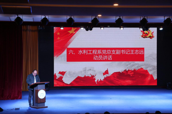 水利系党总支副书记王志远作动员讲话。他肯定了各个班级在过去一段时间为争创“周恩来班”“邓颖超班”所作出的努力和取得的成绩,并提出三点希望:一是要学习周恩来总理不忘初心、坚守信仰,对党忠诚、维护大局,热爱人民、勤政为民,自我革命、永远奋斗,勇于担当、鞠躬尽瘁,严于律己、清正廉洁等优秀的品格,扣好人生的第一粒扣子;二是希望同学们为了共同的目标,团结一致,在班级成员的互相影响和感染下,通过班级的良好班风对班级成员产生无形的动力,通过争创活动让班级成为温暖的大家庭;三是希望同学们在争创过程中,严格要求自我,在学习、考级、竞赛等各项工作中锻炼能力、提高水平。