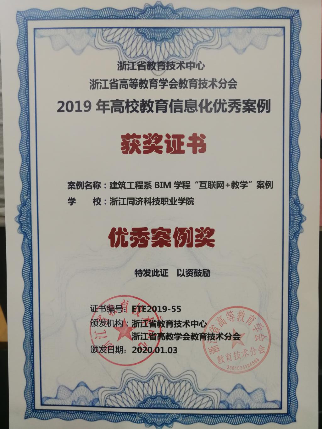 建筑工程系BIM学程“互联网+教学”案例获得2019年浙江省高校信息化教学优秀案例