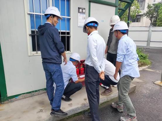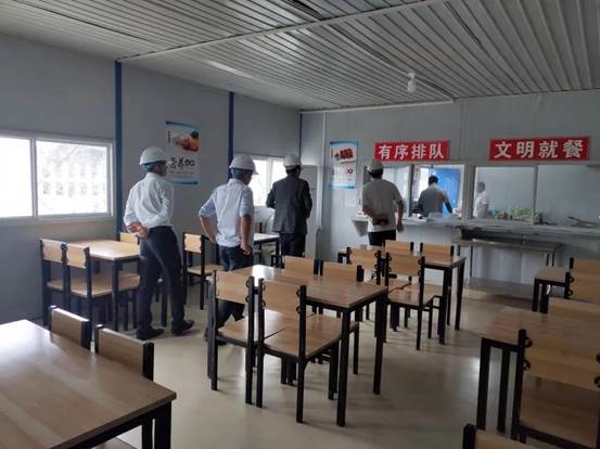 在宿舍休息区,重点针对消防安全管理制度、应急预案、现场灭火器材配备、疏散通道设置、临时消防水源、临时用电、食堂整体卫生、食堂食品安全、垃圾分类等情况进行了全面细致的检查。