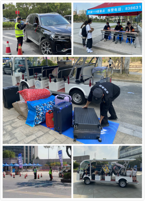 坚守初心使命,保卫处全体上下团结合作,“憋足一口气、铆足一股劲,下好一盘棋”,在各自工作岗位上发挥重要作用。校门执勤组耐心疏导劝离送行家长,对进校学生做好“一测二查”,引导新生前往报到点各就各位;交通疏导组及时疏通道路,引导车辆有序停靠、即停即走、按序通行,确保了交通秩序良好畅通;110值勤巡逻组全面开展校园巡查,对校内可疑人员严防严控,发现问题及时妥善处置;现场保障组积极为新生装卸、搬运行李,为新生提供贴心暖心服务;指挥中心着眼工作全局,把握重点、统筹兼顾,实时调整执勤部署。同时,保卫处积极协调辖区公安民警、交警参与学院迎新安保工作,加强校园巡逻和交通指挥,做好校园治安防控及突发事件的处置工作。