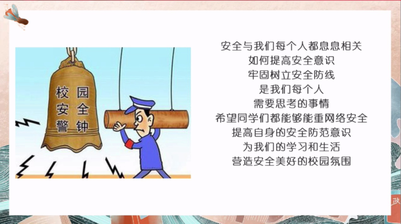 针对近日学生受骗、违法案件频发的情况,徐警官向同学们敲响了警钟,违法犯罪就在我们身边,安全防范意识尤为重要。吸毒、卖淫、裸聊等令人闻之色变的犯罪真真切切的发生在我们身边。