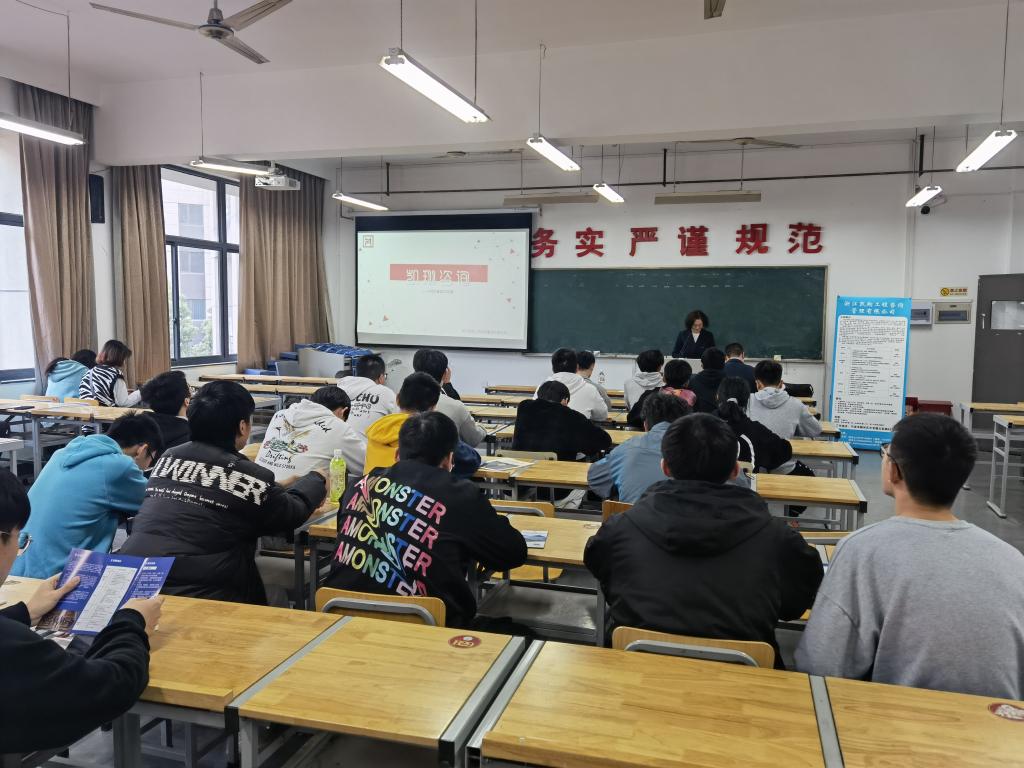 3月26日下午,浙江凯翔工程咨询管理有限公司总经理史乐一行进校进行企业宣讲,水利学院40余名在校生参加宣讲会。