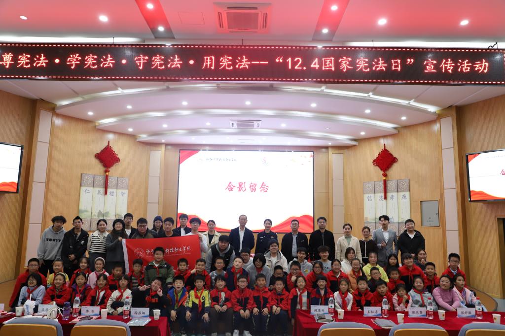 为推进大中小学思政教育一体化建设走深走实,在第十个国家宪法日到来之际。1129日下午马克思主义学院思想道德与法治教研室、形策教研室教师带领学生赴萧山区万向小学开展大中小学“同上一堂宪法课”活动。思想道德与法治教研室主任王红涛及师生代表、萧山区万向小学校长鲍东升、副校长陈惠芬、法治副校长徐燕娜警官及师生参与了此次活动。