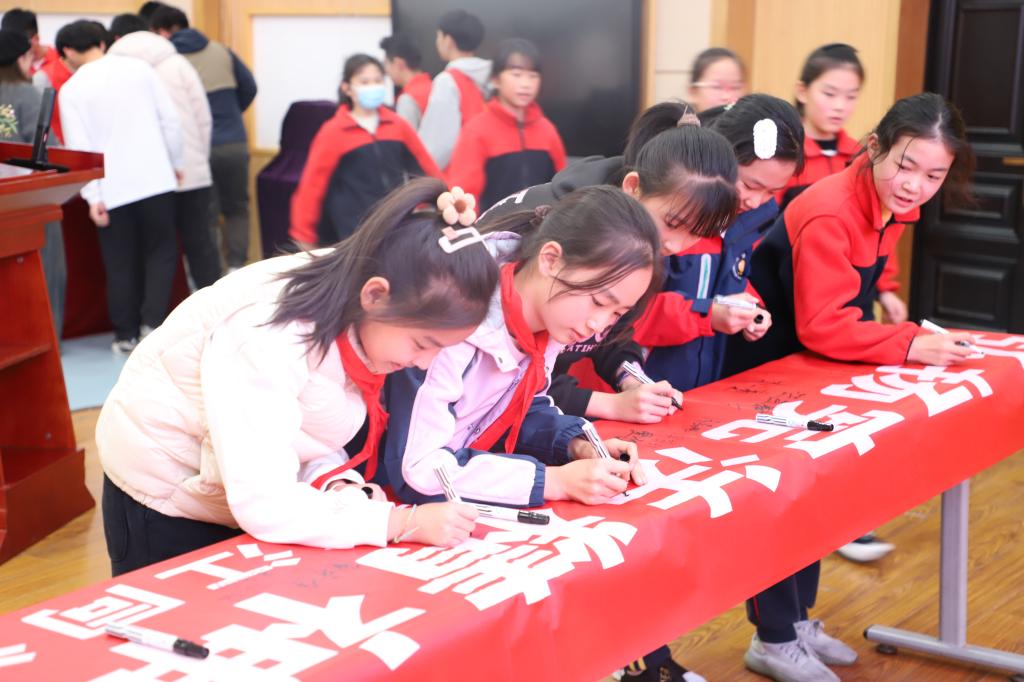 活动中我校师生与万向小学师生同唱国歌,嘹亮的国歌声中,感受到当代青少年昂扬向上的精神风貌,之后面向国旗进行宣誓教育活动。为了更深入的让学生了解宪法与法律知识,傅芳老师作了《年龄上的那些事》法治教育讲座,讲座围绕“年龄”的法律责任问题,用贴近学生实际的案例,通俗易懂的语言,为学生上了一堂生动的法治教育课,现场氛围热烈,学生收获满满。尊崇宪法需从我做起,我校师生与万向小学师生共同进行“弘扬宪法精神,建设法治中国”主题横幅签名,师生用行动阐述着对宪法的敬畏之情。最后围绕宪法知识进行了有奖问答活动,现场互动频繁,学生在愉快的氛围中学到了丰富的宪法知识。